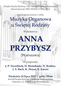 - 24 lipca 2022 roku – koncert z cyklu Muzyka Organowa u Świętej Rodziny w Katowicach