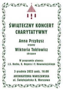- 1.12.2024 18:00 Koncert adwentowy w kościele p.w. Dobrego Pasterza w Warszawie, ul. Szczecińskiego 5